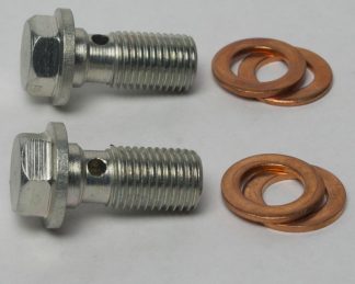3/8 x 24 UNF banjo bolt made from beautiful stainless steel. This set of 2 bolts includes 4 copper sealing washers to guarantee your replacement bolts seal perfectly.
